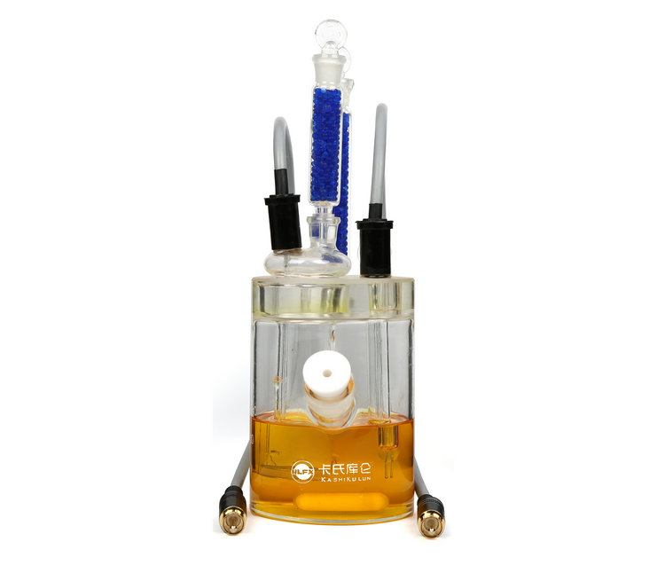 電解池:用于測(cè)定樣品中的水分,由陰極室(電解電極)干燥管、電解電極、陰極室(電解電極內(nèi)腔)、攪拌子、陽(yáng)極室(電解池瓶)干燥管、測(cè)量電極、進(jìn)樣旋塞、陽(yáng)極室(電解池瓶)組成。