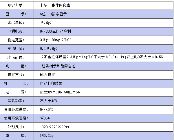 儀器符合GB/T7600;SH/T0246;GB/T606及采用卡爾—費(fèi)休法測(cè)定樣品中水分的有關(guān)標(biāo)準(zhǔn),儀器采用了先進(jìn)的自動(dòng)控制電路,電解電流自動(dòng)跟蹤控制,外型結(jié)構(gòu)新穎,從而使該儀器工作更可靠,使用更方便,具有分析速度快(一分鐘出結(jié)果)、操作簡(jiǎn)便、精度高、自動(dòng)性強(qiáng)等特點(diǎn),同時(shí)具有自動(dòng)打印功能,可將實(shí)驗(yàn)結(jié)果、做樣時(shí)間、樣品編號(hào)自動(dòng)打印出來,廣泛應(yīng)用于石油、化工、電力、鐵路、環(huán)保等部門。